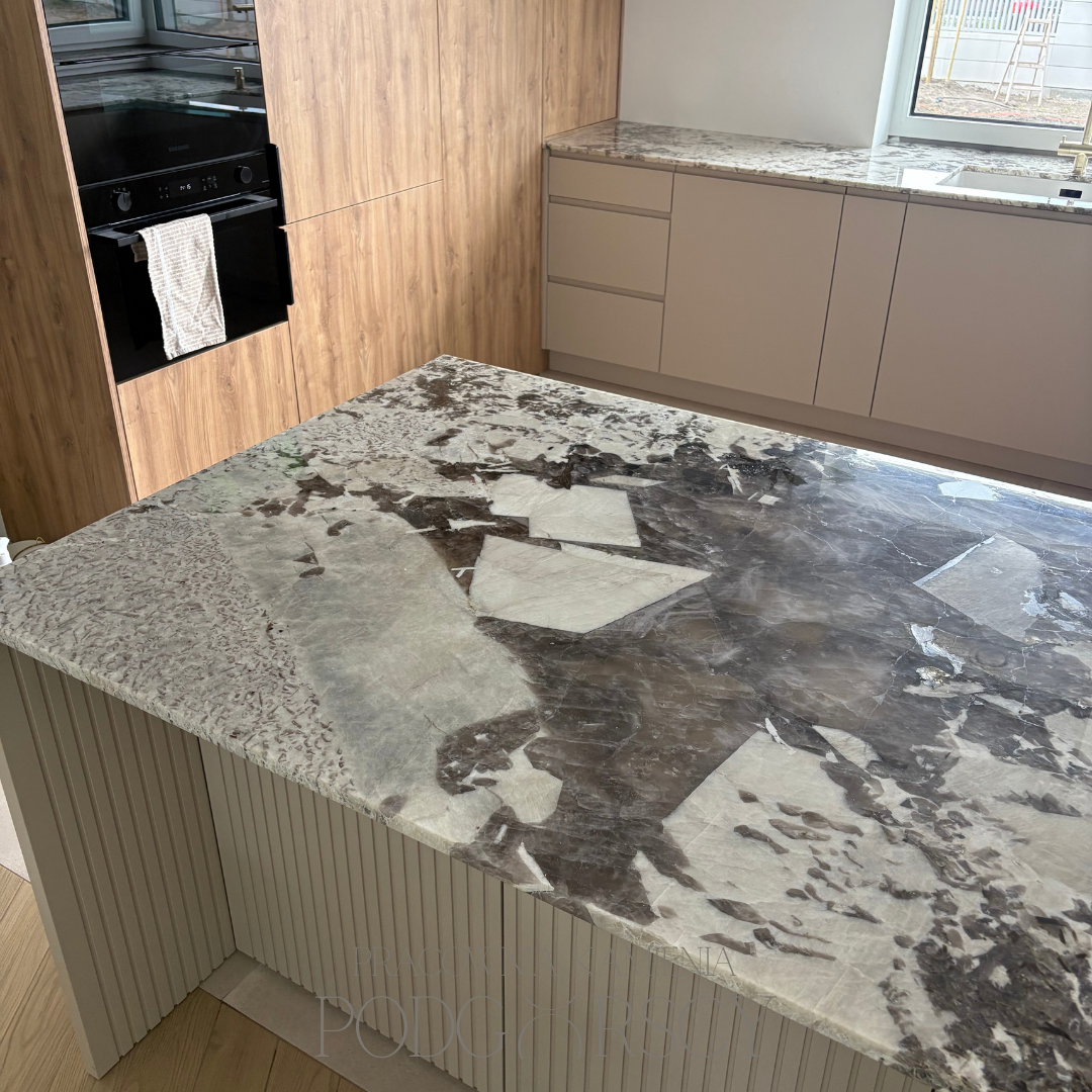 Kwarcyt naturalny łączy w sobie piękno marmuru z trwałością granitu – jest wyjątkowo odporny na zarysowania, wysoką temperaturę i działanie wilgoci.
