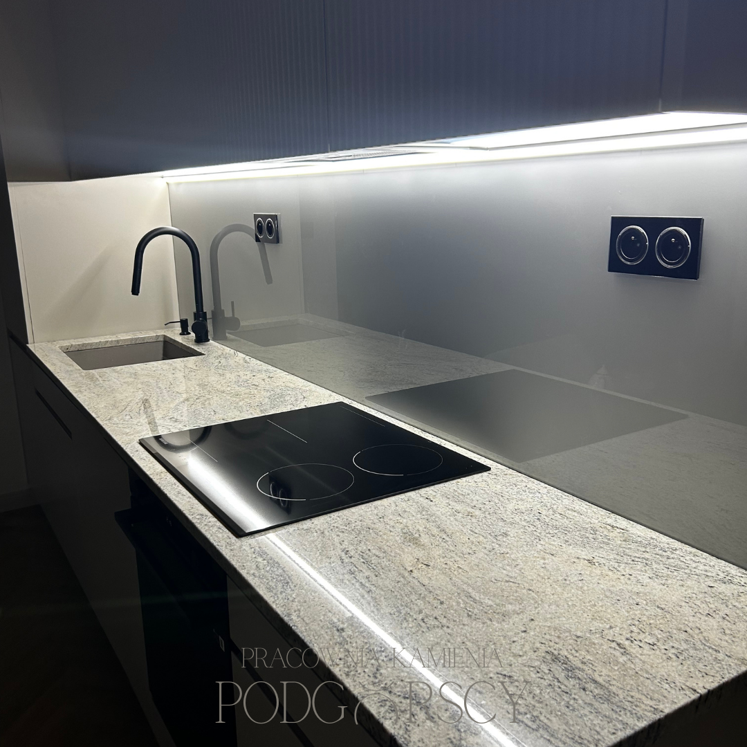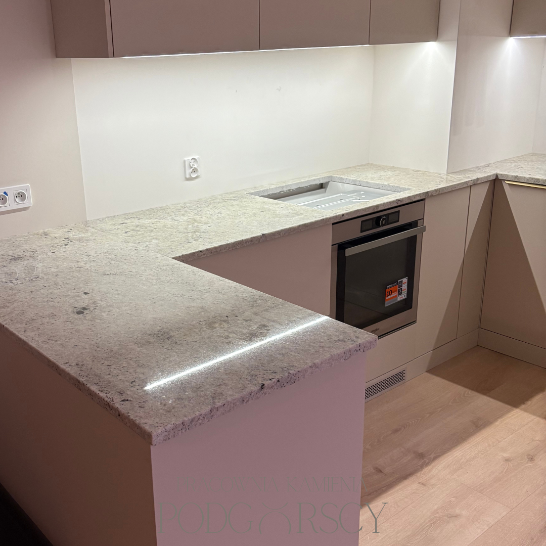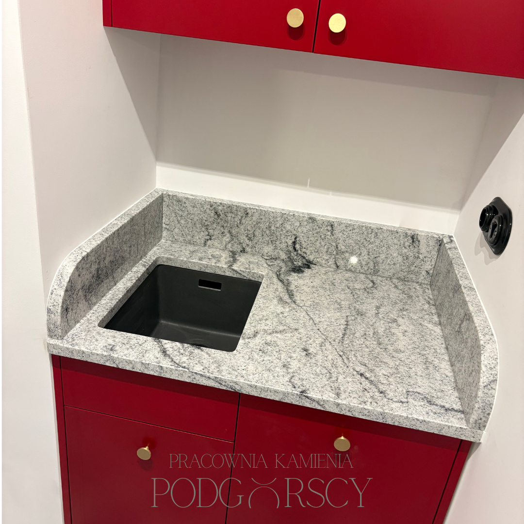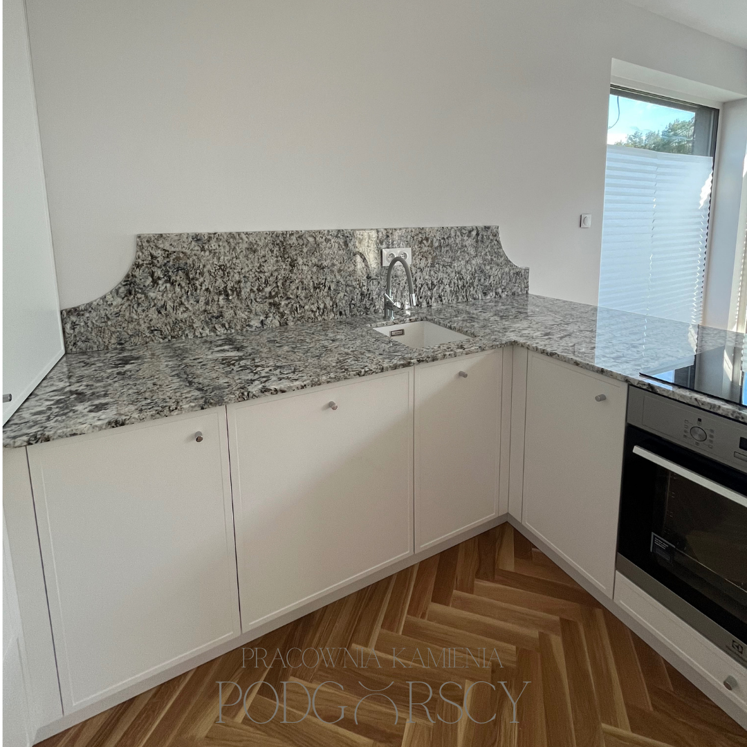 Granit jest odporny na wysoką temperaturę, zarysowania i wilgoć, dzięki czemu idealnie sprawdza się jako blat kuchenny, łazienkowy lub element wykończenia wnętrz premium.
