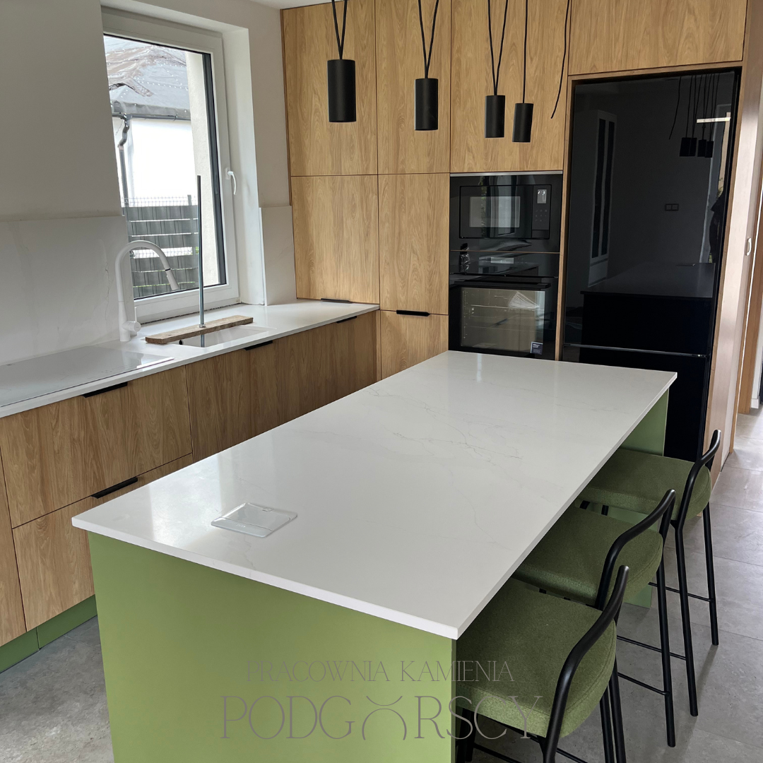 Blaty z konglomeratu kwarcowego to połączenie klasycznej elegancji z nowoczesną trwałością kwarcu.