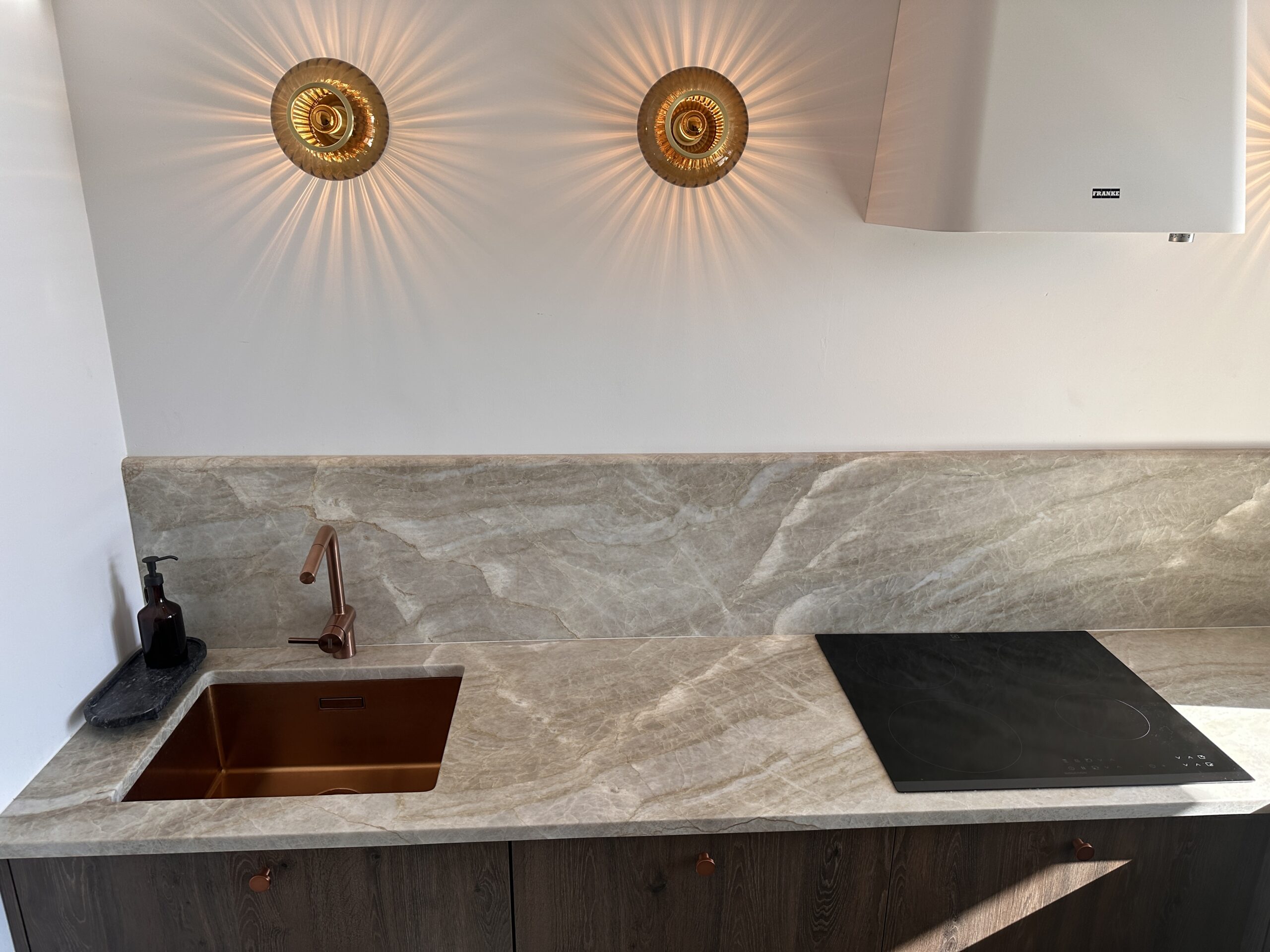 To materiał wybierany do luksusowych kuchni, łazienek i eleganckich przestrzeni użytkowych, w których liczy się zarówno estetyka, jak i niezawodność.