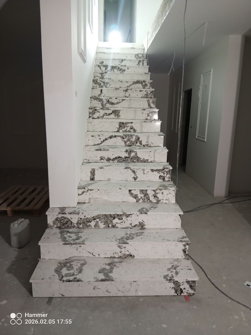 Oferujemy schody wykonywane z różnych rodzajów kamienia – granitu, kwarcytu, marmuru oraz konglomeratu kwarcowego. Dzięki temu możemy idealnie dopasować materiał do charakteru budynku, natężenia użytkowania i stylu architektury.